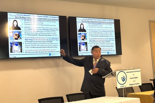 (Minghui.org) La Comisión Internacional para los Derechos Humanos y la Libertad de Religión (ICHRRF) realizó su convención anual en Lorton, Virginia, los días 10 y 11 de octubre de 2025, para discutir las atrocidades globales contra las mujeres. El Dr. Sen Nie, investigador del Centro de Derechos Humanos y profesor emérito de ingeniería en la Universidad Católica de América, habló sobre la persecución en curso a las practicantes de Falun Gong en China por parte del Partido Comunista Chino (PCCh).